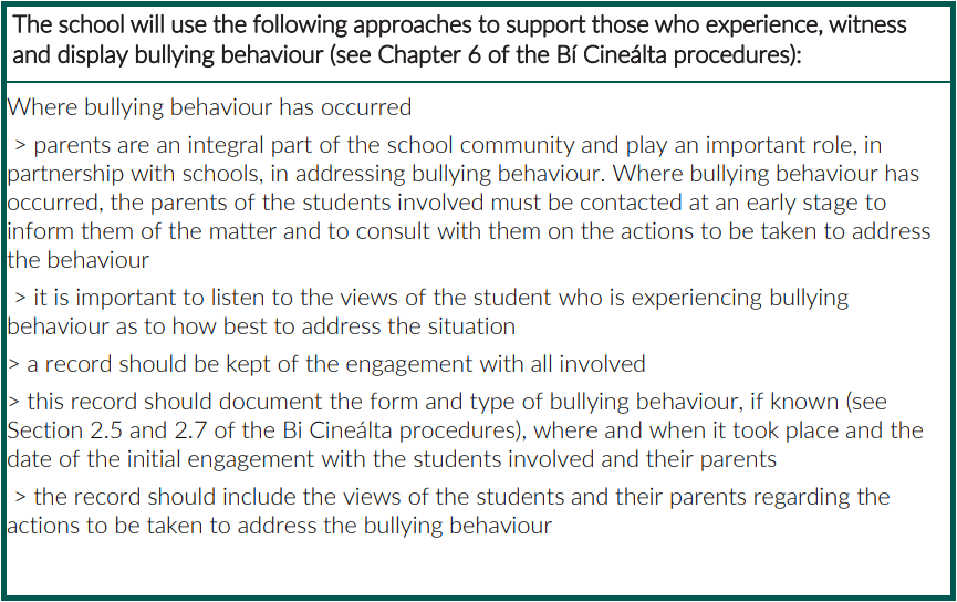Section A: Development/review of our Bí Cineálta policy to prevent and address bullying behaviour
