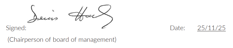 The principal will present an update on bullying behaviour at each board of management meeting. This update will include the number of incidents of bullying behaviour that have been reported since the last meeting, the number of ongoing incidents and the total number of incidents since the beginning of the school year. Where incidents of bullying behaviour have occurred, the principal will also provide a verbal update which will include where relevant, information relating to trends and patterns identified, strategies used to address the bullying behaviour and any wider strategies to prevent and address bullying behaviour where relevant. This update does not contain personal or identifying information. See Chapter 7 of the Bí Cineálta procedures. This policy is available to our school community on the school’s website and in hard copy on request. A student-friendly version of this policy is displayed in the school and is also available on our website and in hard copy on request. This policy and its implementation will be reviewed, following input from our school community, each calendar year or as soon as practicable after there has been a material change in any matter to which this policy refers.